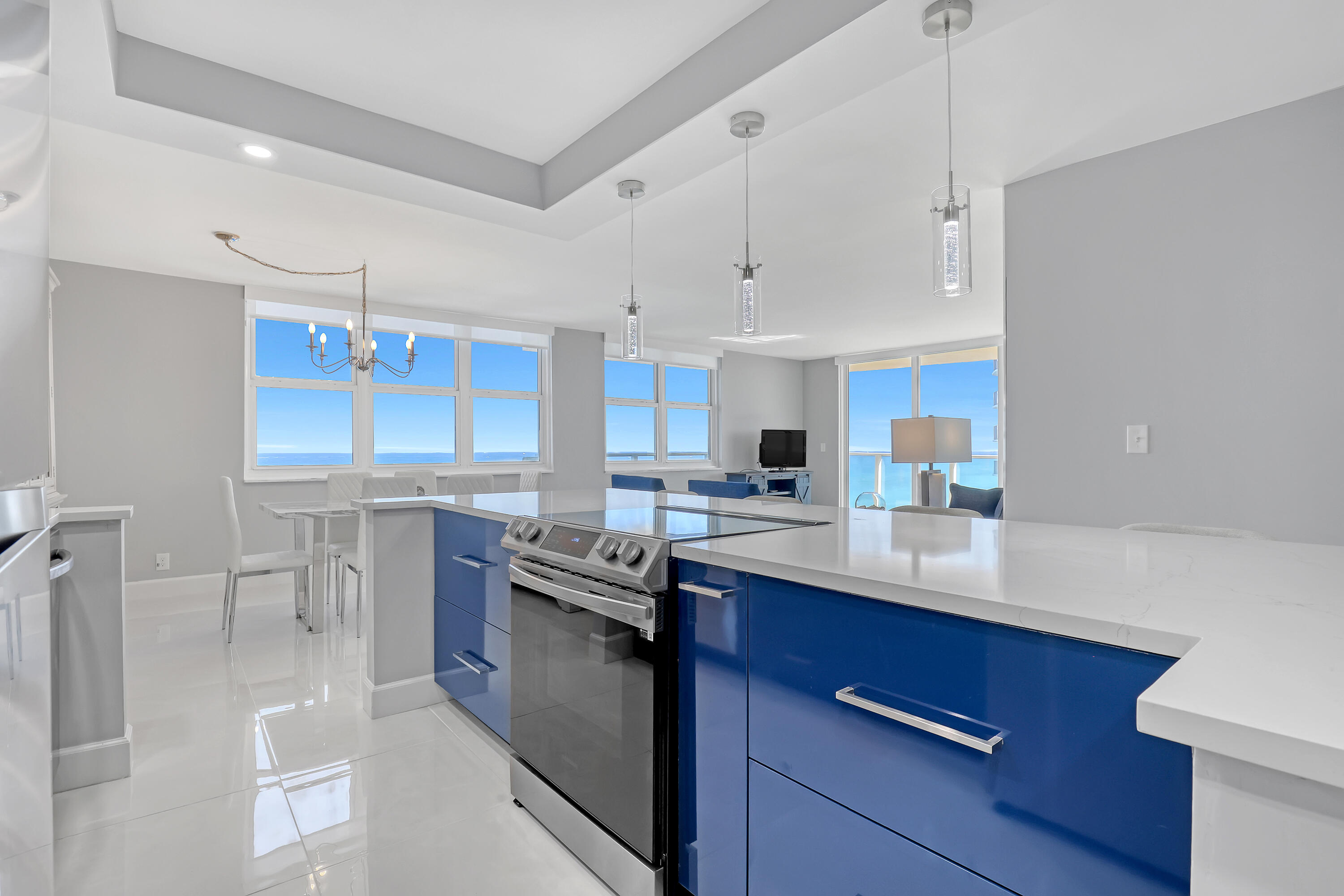 DescriptionStep into this exquisitely remodeled corner unit condo and enjoy breathtaking ocean views from every window. This spacious 2 bedroom, 2 bath residence has been thoughtfully redesigned for modern coastal living, seamlessly blending elegance, comfort, and functionality. Upon entry, you're immediately greeted with gleaming porcelain tile floors that reflect the shimmering ocean just beyond your windows. The brand new chef's kitchen is an entertainer's dream, featuring a large quartz island, sleek modern cabinetry, stainless steel appliances, and a dedicated coffee bar and wine station. The open concept living and dining area is wrapped in floor to ceiling views and enhanced by motorized shades, creating a refined yet relaxed atmosphere. Both bedrooms feature engineered hardwood flooring. The primary suite offers a custom walk in closet and a spa inspired ensuite with a walk in shower. Step out onto the covered wrap around balcony to take in sweeping views of the ocean, Intracoastal Waterway, and city skylineperfect for morning coffee or sunset cocktails with the sea breeze. Fully furnished residence with major upgrades completed in 2024, including a new A/C, electrical panel, and water heater. Additional conveniences include an assigned covered parking space and a private storage closet. Residents enjoy an array of resort style amenities, including a pool, fitness center with sauna, billiards and game room, a library and bike storage. Ideal as a primary residence, vacation retreat, or investment opportunity, this sophisticated oceanfront oasis is truly a place to call home.