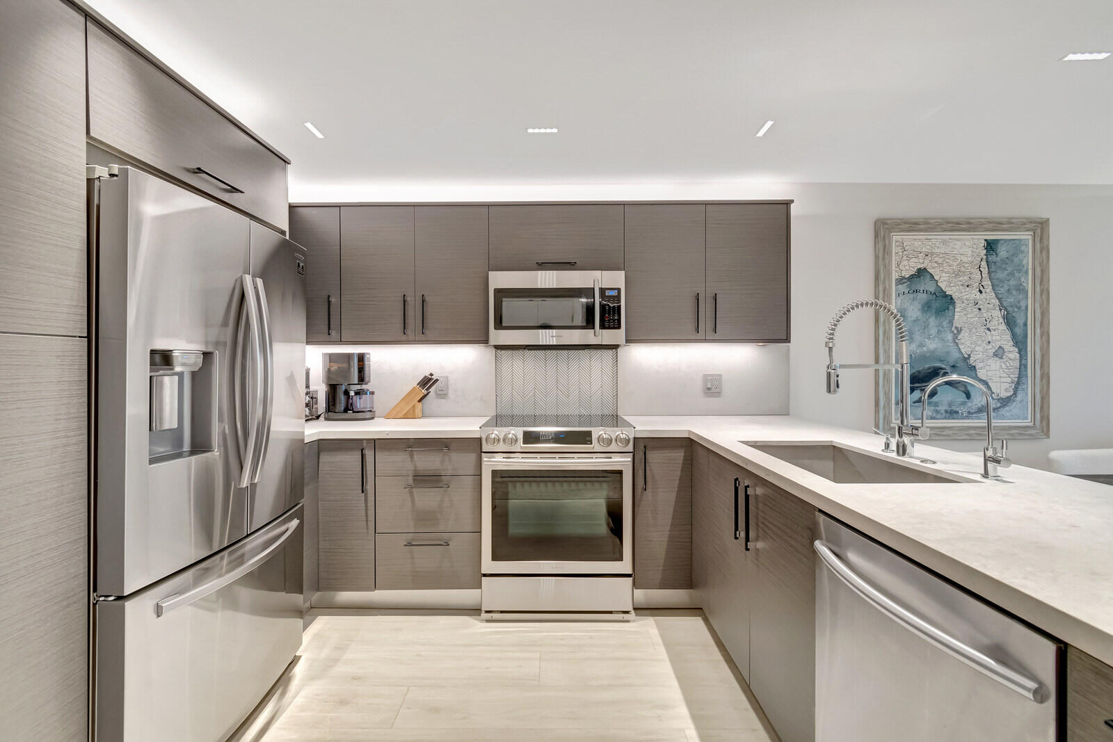 DescriptionFully Renovated 2 Bed / 2 Bath Condo in Prime Boca Raton Welcome to a completely renovated true 2 bedroom, 2 bath condo featuring modern luxury and thoughtful design throughout. The open kitchen showcases a quartz waterfall peninsula, paired with a black leather finished granite dry bar and custom matching built in granite tabletop with under cabinet and accent lighting. Lighting has been professionally designed with multiple zoned switches for walkways, kitchen workspaces, and seating areas. A floating custom media center matches the cabinetry for a seamless look. Additional upgrades include modern recessed lighting with three way switching, impact hurricane doors with LOW E glass for energy efficiency, a filtered drinking water spout and refrigerator connection, a tankless water heater, custom built in adjustable closets, and a full size washer and dryer inside the unit. Both bathrooms feature high end finishes, including Toto toilets, intricate tilework, a spa style primary shower with body jets, and a guest shower with a handheld wand. Ideally located near I 95, Boca's beaches, dining, and shopping, with low maintenance ownership costs. Plus, Boca Paddle by CityPickle debuts in 2026 nearby, offering luxury indoor pickleball and padel courts with resort style amenities.